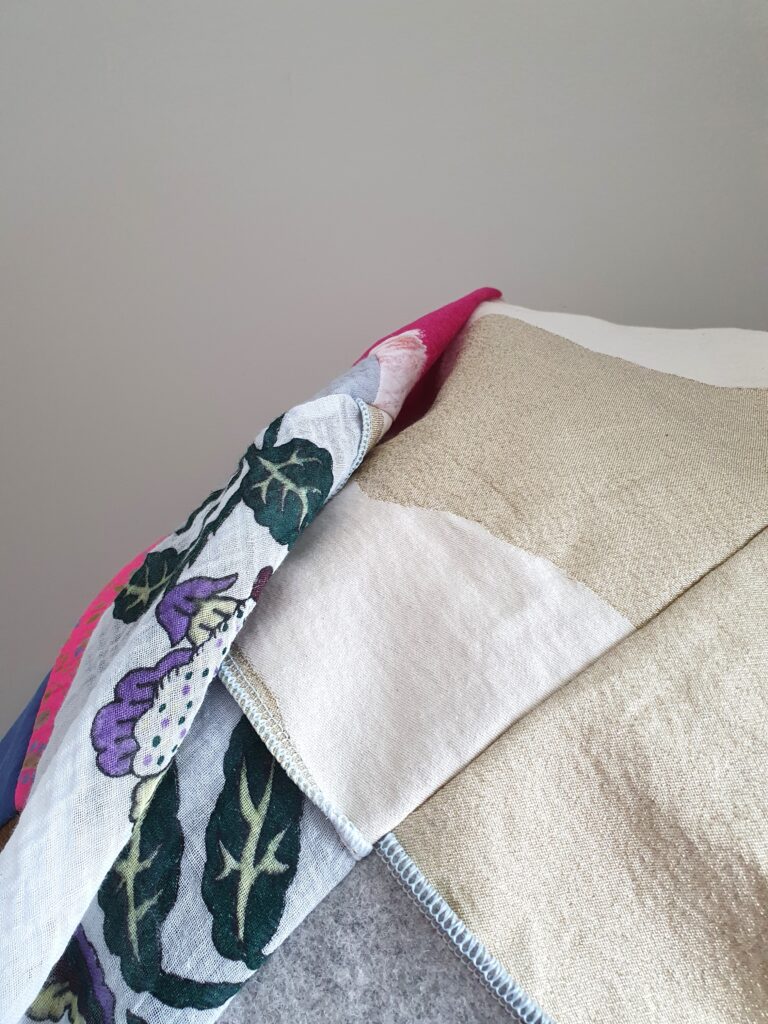 Met nog veel prachtige gekleurde stoffen in de kast en de drang om mooi textiel te blijven sparen bedacht ik de DagDroomDoek.